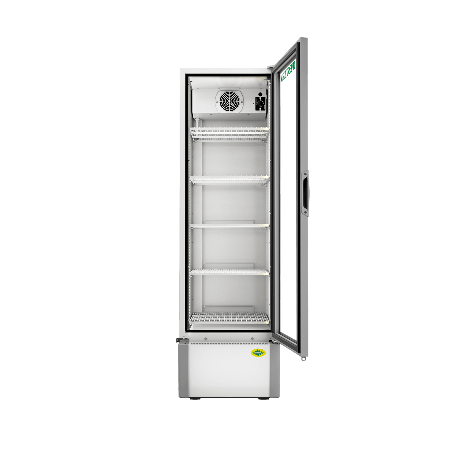 The Western SRC360HCF‑GL is a single‑door commercial refrigerator provides a larger gross capacity of around 302 litres, with external dimensions of roughly 514 mm (W) × 620 mm (D) × 1740 mm (H) and five shelves for flexible storage. It is designed to maintain consistent cooling, typically within a +2 °C to +8 °C range, and offers solid product visibility through its glass door along with LED lighting and a secure lockable design.